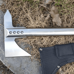 The Aggressively-Styled Serval Tactical Tomahawk Boasts A 58 HRC 420HC Stainless Steel Hawk Head Construction With A Tubular-Style 304 Stainless Steel Handle. The Dual-Bit Hawk Head Has A Nasty Straightened Viscaina Style Blade On One Side And A Gnarly Tactical Spike On The Other! The Serval Also Comes Complete With A Rugged Black Nylon Sheath So You Can Keep Your Serval Edges Sharp, And Protect Yourself, Your Pack And Your Traveling Partners While You're On The Move In The Field!